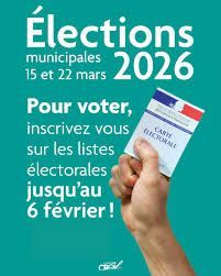 Les personnes qui souhaitent s’inscrire sur la liste électorale en vue de participer au scrutin des élections municipales des 15 et 22 mars prochains doivent déposer leur demande au plus tard :