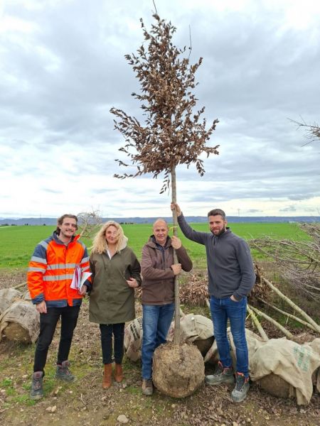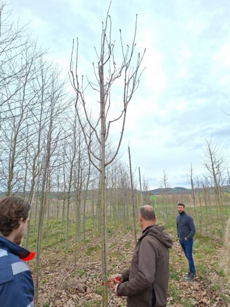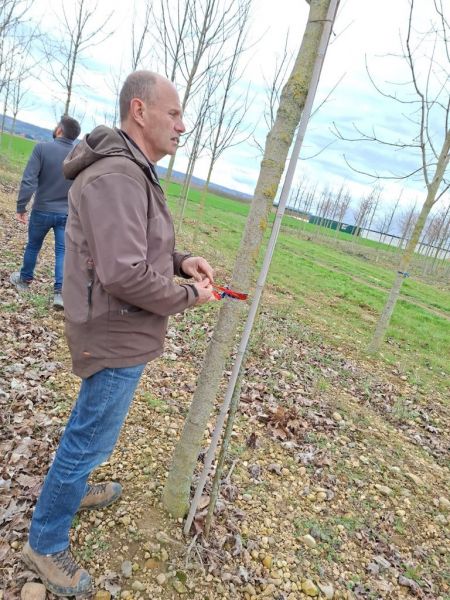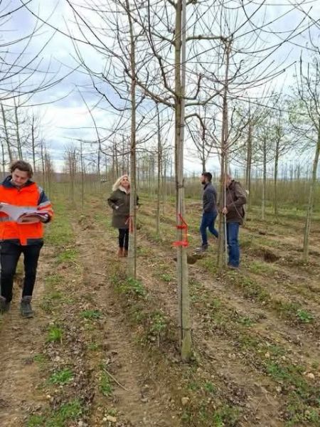 Afin de préparer ces plantations, la Municipalité s’est rendue, aux côtés du paysagiste en charge du projet et du cabinet d'études, chez un pépiniériste afin de marquer les arbres qui seront plantés dans le futur parc. Cette étape consiste à sélectionner directement sur place les arbres et à les réserver en les identifiant individuellement. Madame le Maire tenait particulièrement à être présente lors de ce choix ainsi que Françoise Herbepin, adjointe. Il s’agit en effet d’un moment important du projet, qui permettra de voir s’enraciner au cœur du village un nombre remarquable d’arbres.